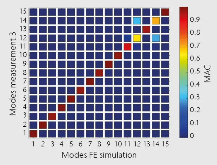 Figure 5: MAC values of modes from measurement vs. FE simulation