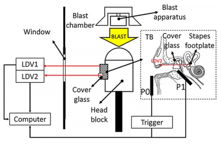 Experimental setup for blast response measurement; Jiang et al., Hear Res, Vol. 403, 2021