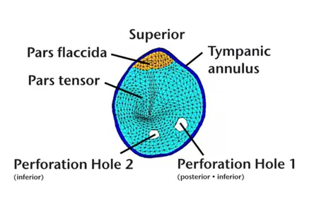 Perforated tympanic membrane model; Gan et al., J. Acoust Soc Am Vol. 126: 243-253, 2009