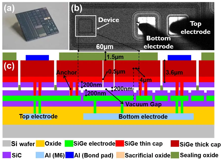 Figure 1: (a) Micrographs of the top view of the cMUT cell, (b) Cross-sectional view of the cMUT cell.