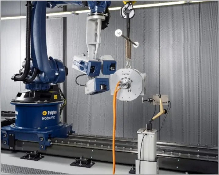 With the latest robot-assisted 3D laser Doppler vibrometers from Polytec, it is possible to provide an answer to the special challenges in the acoustic analysis of electric drives. Thanks to the complete automation of the measurement, enough measuring points can be realized for the higher kHz range. The optical measurement method minimizes the influence of the test setup on the measurement results. The signal-to-noise ratio can be significantly increased using laser Doppler vibrometers with QTec technology. This reduces the measurement time, increases the evaluable frequency range and provides a reliable attenuation estimate.