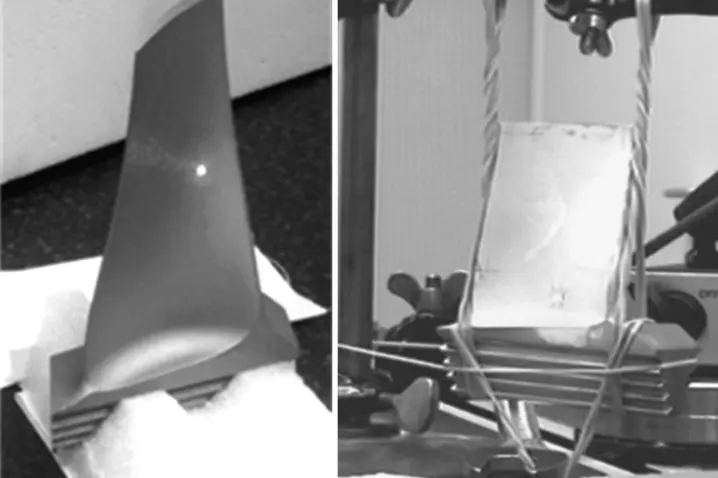 Using rigid foam as a means of support for carrying out free-free calculations on turbine blades is totally permissible and allows quick and easy positioning, especially in the case of serial measurements.