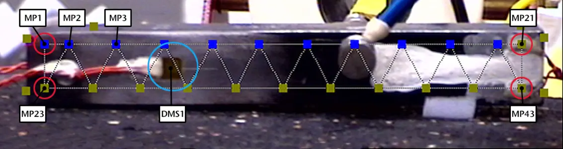 In an experiment on a bending bar, the influence of the excitation position on the transfer function is determined using strain gages and PSV. A modal hammer was used for excitation.