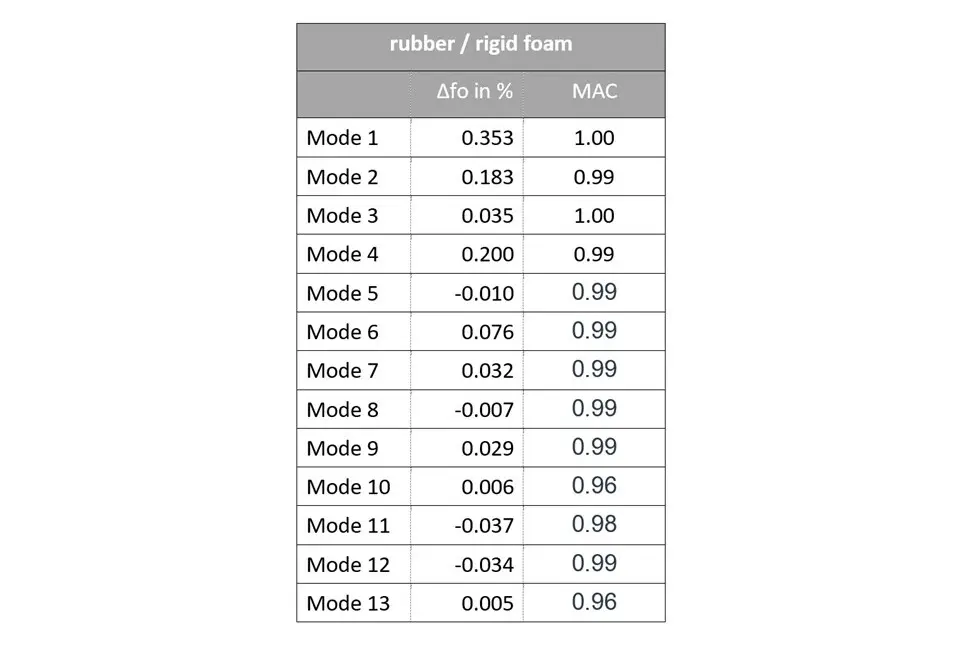 If the frequency deviations of the two support types are compared, the result is clear. In this case, the support type has no significant influence. It is more important that the support in the hard foam reliably maintains the position of the object so that a single 3D alignment can be used, even for the serial measurement of multiple test specimens.