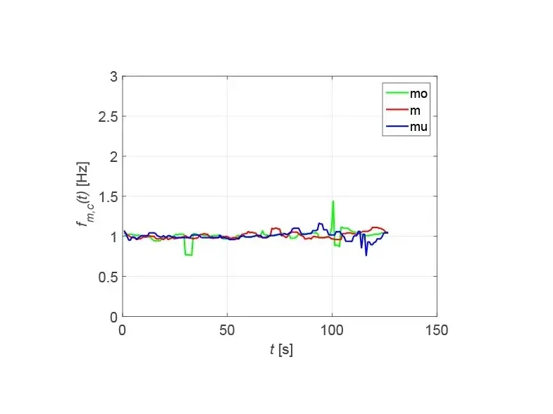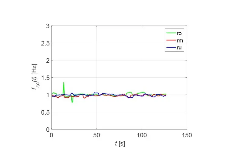 The determined heart rate is about f = 1 Hz and is most stable at the middle and right measurement points, as already suspected when looking at Fig. 4. In particular, the right measurement points show the fewest outliers, which may be caused, for example, by movement or coughing of the patient.