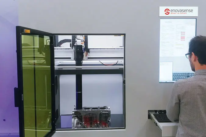 Due to its speed, accuracy, and flexibility, the coating thickness measurement system is almost universally applicable, and the areas of application are broad. In the automotive or aerospace industry, for example, it is suitable for measuring paint thickness on metal or plastic. Likewise, chrome and metal coatings on plastics can be inspected, as well as chassis galvanization or metal coatings in engines, e.g., in cylinder bores. Together with a French automobile manufacturer, a patented automation solution was developed for this purpose (Figure 1).